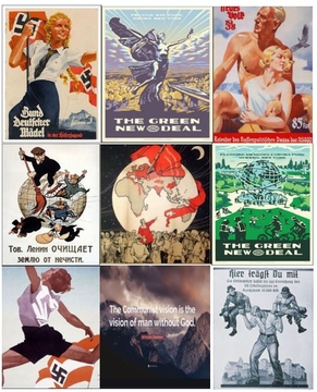 Check out the “Green New Scam” posters below, along with some other Communist and Nazi posters that all share similar themes.