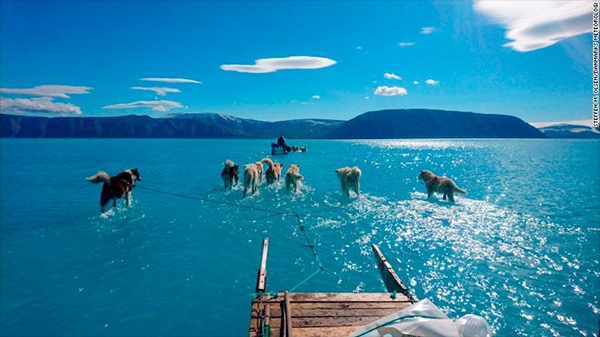 One by one, various climate hoaxes continue to be exposed as the fake news they’ve always been, including the below photo of what appears to be sled dogs running across a patch of melted glacier in Greenland.