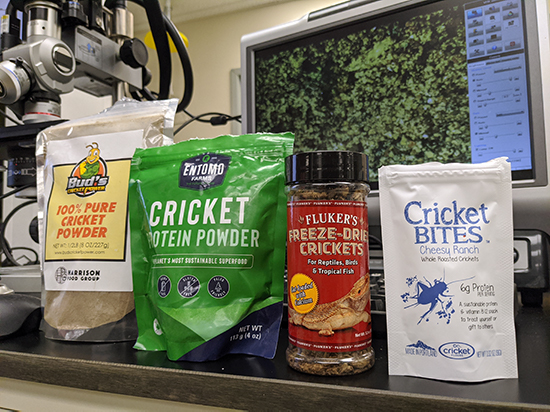 We purchased three brands of crickets for human consumption — Cricket Bites, Entomo and Bud’s — plus one brand labeled for consumption by reptiles: Fluker’s.