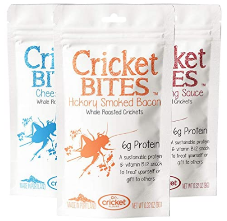 Cricket food companies have tried to make their crunchy crickets more tasty by adding salt and flavorings. The Cricket Bites brand adds various spices and cheese flavorings to produce their “Cheesy Ranch” flavor. They also offer crickets in “Hickory Smoked Bacon,” which seems a bit hilarious, given that the whole point of eating crickets is to avoid eating meat products like bacon.