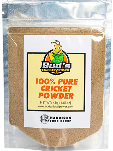 When it comes to cricket food products, one thing you have to give the industry credit about is the fact that most cricket food providers aren’t lying about what’s in their product. A brand called Bud’s Cricket Power is labeled as, “100% Pure Cricket Powder.”